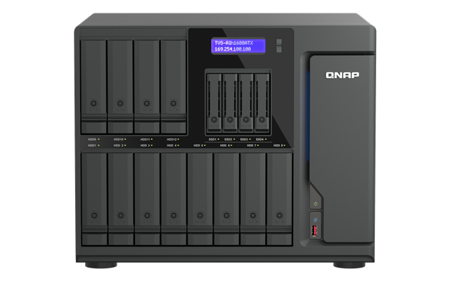 Unlike traditional HDD-only systems that struggle under concurrent access, or all-flash arrays that become cost-prohibitive at scale, the TVS-AIh1688ATX uses a hybrid storage architecture to balance performance and capacity within a single platform. Using the U.2/U.3 SSDs with Qtier, creatives can push 25GbE/100GbE speeds from a hybrid storage with active projects benefiting from SSD acceleration while bulk media libraries scale efficiently on high-capacity storage.